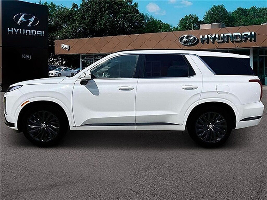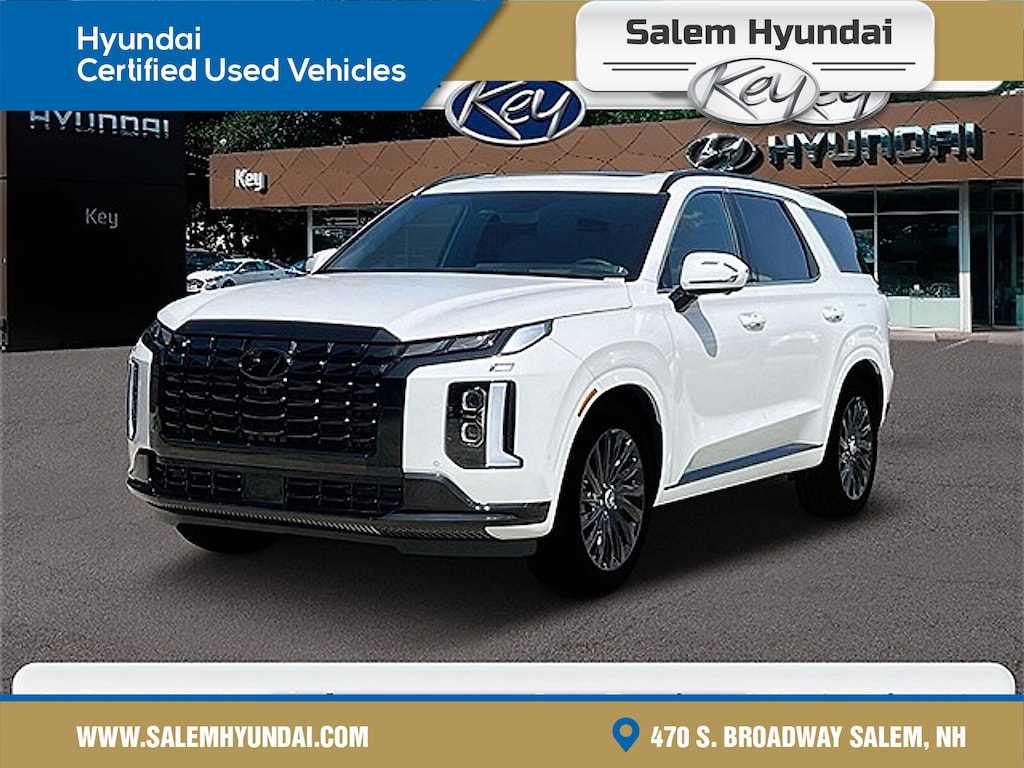 "2025 Hyundai Palisade Calligraphy Night Edition Calligraphy Night Edition Hyper WhiteThis Palisade Calligraphy Night Edition is nicely equipped with Option Group 01 12 Speakers 3rd row seats: split-bench 4-Wheel Disc Brakes ABS brakes Air Conditioning Alloy wheels AM/FM radio: SiriusXM Apple CarPlay & Android Auto Auto High-beam Headlights Auto-dimming door mirrors Auto-dimming Rear-View mirror Auto-leveling suspension Automatic temperature control Brake assist Bumpers: body-color Cargo Net Cargo Tray Carpeted Floor Mats Compass Delay-off headlights Driver door bin Driver vanity mirror Dual front impact airbags Dual front side impact airbags Electronic Stability Control Emergency communication system Exterior Parking Camera Rear Four wheel independent suspension Front anti-roll bar Front Bucket Seats Front Center Armrest Front dual zone A/C Front reading lights Fully automatic headlights Garage door transmitter: HomeLink harman/kardon® Speakers Heads-Up Display Heated & Ventilated Front Bucket Seats Heated door mirrors Heated front seats Heated rear seats Heated steering wheel Illuminated entry Knee airbag Leather steering wheel Low tire pressure warning Memory seat Microfiber Suede Seat Trim Mudguards Navigation System Occupant sensing airbag Outside temperature display Overhead airbag Overhead console Panic alarm Passenger door bin Passenger vanity mirror Power door mirrors Power driver seat Power Liftgate Power moonroof Power passenger seat Power steering Power windows Radio data system Radio: AM/FM/MP3 Premium Audio System Rain sensing wipers Rear air conditioning Rear anti-roll bar Rear audio controls Rear reading lights Rear side impact airbag Rear window defroster Rear window wiper Reclining 3rd row seat Remote keyless entry Roadside Assistance Kit Roof rack Security system Speed control Speed-sensing steering Split folding rear seat Spoiler Steering wheel mounted audio controls Tachometer Telescoping steering wheel Tilt steering wheel Traction control Trip computer Turn signal indicator mirrors Variably intermittent wipers Ventilated front seats Ventilated rear seats Wheel Locks and Wheels: 20""x 7.5J Black Liquid Paint Alloy.Call 603-841-3099 to schedule your contact free test drive today!"