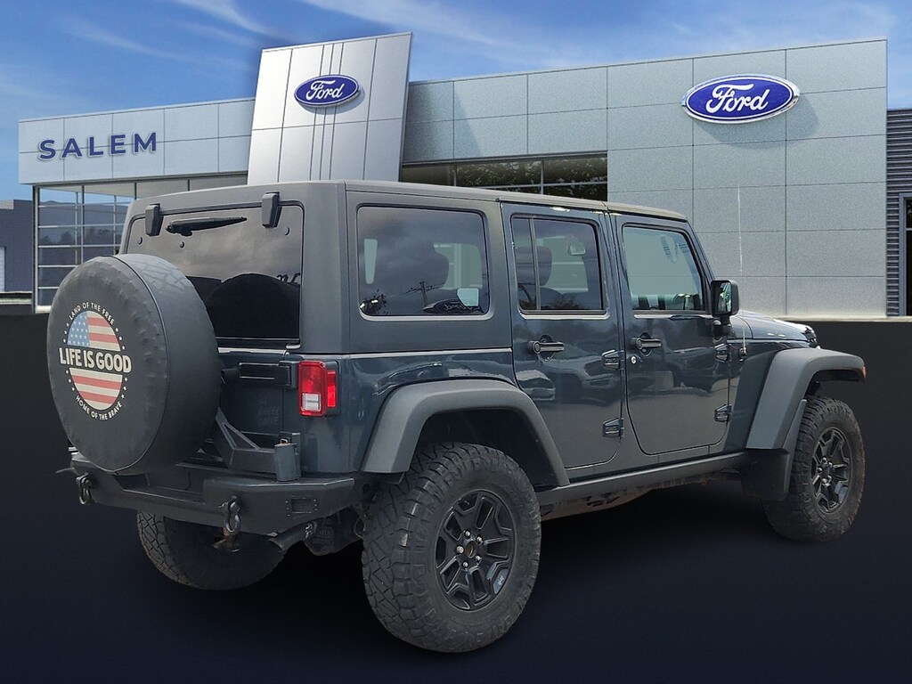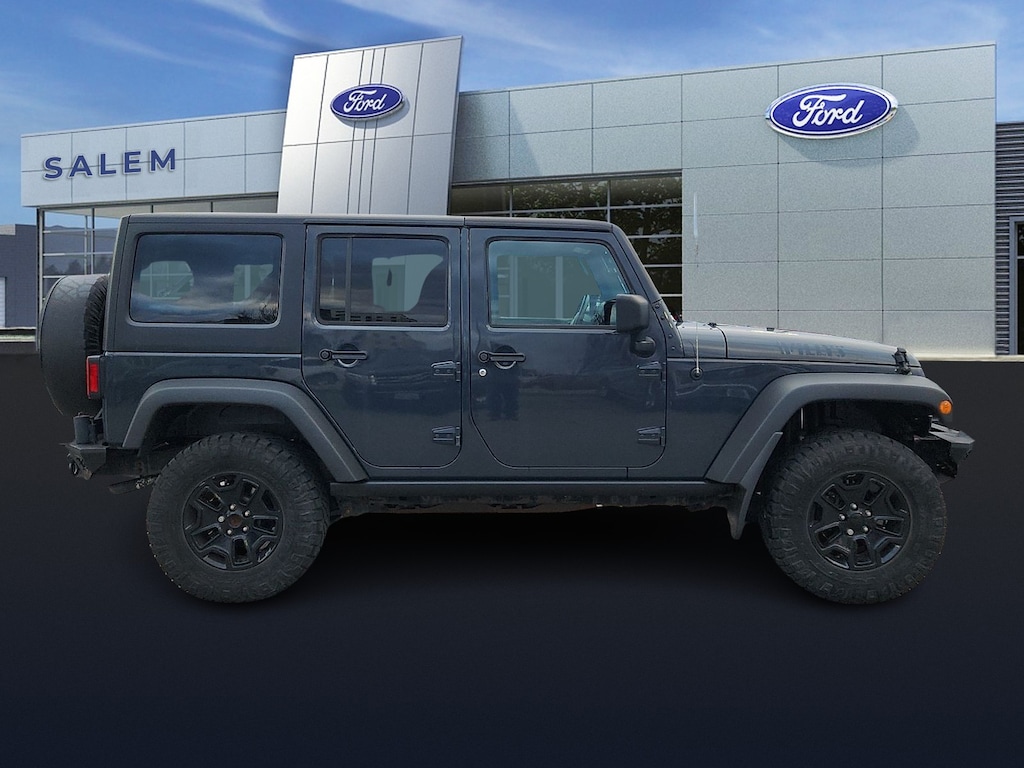 Priced below KBB Fair Purchase Price!Odometer is 38278 miles below market average!*ONE OWNER* ***PLEASE CALL 603-898-9766*** Auto-Dimming Mirror w/Reading Lamp Black 3-Piece Hard Top Body Color 3-Piece Hard Top Freedom Panel Storage Bag Front 1-Touch Down Power Windows Power Convenience Group Power Heated Mirrors Power Locks Rear Window Defroster Rear Window Wiper/Washer Remote Keyless Entry Security Alarm.*****At Salem Ford you win!***** ****PLEASE CALL 603-898-9766****We make the car buying process very simple by displaying the lowest price on the window. We price our vehicles more aggressively than anyone else in the area. For that reason we're proud to display it on every vehicle's window.We believe there is more to buying a vehicle than worrying about the price. For that reason Key Auto has simplified that process for our customers. When we price a vehicle we take the following into consideration: 1) market conditions 2) what the area dealers are selling them for 3) Kelly Blue Book* retail. This way when you leave a Key Auto Dealership you're confident you've received the absolute best deal.CARFAX One-Owner.Certified. Certification Program Details: Ford Blue Advantage: Blue Certified* 139 Point Inspection* Transferable Warranty* Vehicle History* Warranty Deductible: $100* Roadside Assistance* Limited Warranty: 3 Month/4000 Mile (whichever comes first) after new car warranty expires or from certified purchase date* and 11000 FordPass Rewards Points to use toward first maintenance visit 2018 Jeep Wrangler JK Unlimited Willys Wheeler 4D Sport Utility Rhino Clearcoat Unlimited Willys Wheeler 4WD 5-Speed AutomaticSalem Ford is proud to present you with another True Market Priced Pre-Owned Vehicle. Transparent Pricing Of $ 21678 !! This 2018 Jeep Wrangler JK Unlimited Willys Wheeler Ford Blue Advantage: Blue Certified is loaded with the following Factory Options: Power Convenience Group (Auto-Dimming Mirror w/Reading Lamp Front 1-Touch Down Power Windows Power Heated Mirrors Power Locks Remote Keyless Entry and Security Alarm) Black 3-Piece Hard Top Body Color 3-Piece Hard Top Freedom Panel Storage Bag Rear Window Defroster and Rear Window Wiper/Washer Power Convenience Group (Auto-Dimming Mirror w/Reading Lamp Front 1-Touch Down Power Windows Power Heated Mirrors Power Locks Remote Keyless Entry and Security Alarm) Connectivity Group (Tire Pressure Monitoring Display Uconnect Voice Command w/Bluetooth and Vehicle Information Center) Quick Order Package 24W Willys Wheeler W (4-Wheel Drive Swing Gate Decal Anti-Spin Differential Rear Axle Black Jeep Grille Badge Deep Tint Sunscreen Windows Jeep Trail Rated Kit Low Gloss Wrangler JK Decal MOPAR Slush Mats Performance Suspension Rear Passenger Assist Handles Kit Willys Hood Decal and Willys Wheeler Grille) Willys Wheeler Package Ford Blue Advantage: Blue Certified Certified Black 3-Piece Hard Top Body Color 3-Piece Hard Top Freedom Panel Storage Bag Rear Window Defroster Rear Window Wiper/Washer 1-Yr SiriusXM Radio Service 4-Wheel Disc Brakes 8 Speakers ABS brakes Air Conditioning AM/FM radio Audio Jack Input for Mobile Devices Brake assist CD player Cloth Seats w/Adjustable Head Restraints Compass Driver Height Adjuster Seat Driver vanity mirror Dual front impact airbags Electronic Stability Control Front anti-roll bar Front Bucket Seats Front Center Armrest w/Storage Front fog lights Integrated roll-over protection Low tire pressure warning Manufacturer's Statement of Origin Normal Duty Suspension Occupant sensing airbag Outside temperature display Passenger door bin Passenger vanity mirror Power steering R1234YF A/C Refrigerant Radio: 130 Rear anti-roll bar Speed control Split folding rear seat Steering wheel mounted audio controls Tachometer Tilt steering wheel Traction control Trip computer and Variab