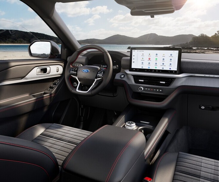 The Explorer ST delivers a genuine performance SUV experience with a boisterous twin-turbo V6 engine upgrade, improved handling dynamic, and sporty style. It builds on the ST-Line (including Premium Package features) with equipment like: