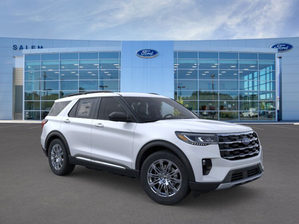"Recent Arrival! 2025 Ford Explorer Active White Metallic ***PLEASE CALL 603-898-9766*** 4WD.This Explorer Active is nicely equipped with Active Comfort Package (Front Fascia Heated ActiveX Seating Material Captain's Chairs Heated Steering Wheel Remote Start System Second Row HVAC Controls and Universal Garage Door Opener (UGDO)) Equipment Group 200A Standard Package 4WD 3.58 Non-Limited Slip Rear Axle 3rd row seats: bench 4-Wheel Disc Brakes 6 Speakers ABS brakes Air Conditioning Alloy wheels AM/FM radio: SiriusXM with 360L AM/FM Stereo Apple CarPlay/Android Auto Auto High-beam Headlights Automatic temperature control Brake assist Bumpers: body-color Compass Delay-off headlights Driver door bin Driver vanity mirror Dual front impact airbags Dual front side impact airbags Electronic Stability Control Emergency communication system: 911 Assist Exterior Parking Camera Rear Four wheel independent suspension Front & 2nd Rows Floor Liners w/o Carpet Floor Mats Front anti-roll bar Front Bucket Seats Front Center Armrest Front dual zone A/C Front License Plate Bracket Front reading lights Fully automatic headlights Heated door mirrors Heated leather seats Illuminated entry Knee airbag Leather steering wheel Low tire pressure warning Navigation System Occupant sensing airbag Outside temperature display Overhead airbag Overhead console Panic alarm Panoramic Vista Roof w/Power Shade Passenger door bin Passenger vanity mirror Power door mirrors Power driver seat Power Liftgate Power passenger seat Power steering Power windows Rear air conditioning Rear anti-roll bar Rear reading lights Rear window defroster Rear window wiper Remote keyless entry Security system Speed control Speed-sensing steering Speed-Sensitive Wipers Split folding rear seat Spoiler Steering wheel mounted audio controls Tachometer Telescoping steering wheel Tilt steering wheel Traction control Trip computer Unique Heated Cloth Captain's Chairs Variably intermittent wipers Wheels: 18""Sparkle Silver-Painted Aluminum and Wheels: 20""Luster Nickel-Painted Aluminum.*$500 Finance Assist/ $500 Trade Assist details below. *Trade-in must be a 2014 or newer with 80k miles or less to qualify for $500 Trade Assist dealer incentive *Minimum finance amount is $10000 to qualify for $500 Finance Assist dealer incentive."