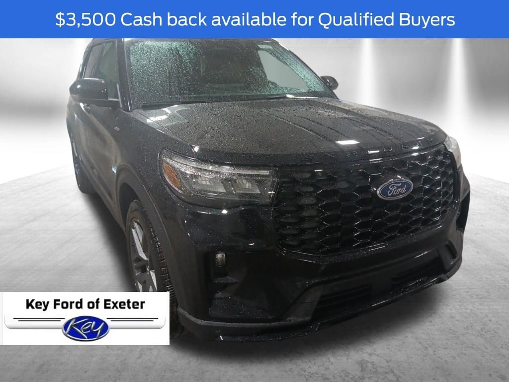 KEY FORD OF EXETER is proud to present you with another True Market Priced Vehicle. This 2026 Ford Explorer ST-Line is loaded with the following Factory Options: 4WD Equipment Group 300A Standard Package (Heated Unique Cloth Captain's Chairs, Radio: B&O Sound System by Bang and Olufsen, and Wheels: 20" Ebony-Painted Machined Aluminum), ST-Line Street Pack (Performance Brakes, Red Painted Performance Front and Rear Brake Calipers, and Wheels: 21" Magnetite-Painted Aluminum), 4WD, 10 Speakers, 3rd row seats: bench, 4-Wheel Disc Brakes, ABS brakes, Air Conditioning, Alloy wheels, AM/FM radio: SiriusXM with 360L, Apple CarPlay/Android Auto, Auto High-beam Headlights, Automatic temperature control, BlueCruise (equipment + 1-Year + 90-Day Plan), BlueCruise Hardware, Brake assist, Bumpers: body-color, Compass, Delay-off headlights, Driver door bin, Driver vanity mirror, Dual front impact airbags, Dual front side impact airbags, Electronic Stability Control, Emergency communication system: 911 Assist, Exterior Parking Camera Rear, Four wheel independent suspension, Front anti-roll bar, Front Bucket Seats, Front Center Armrest, Front dual zone A/C, Front fog lights, Front reading lights, Fully automatic headlights, Garage door transmitter, Heated door mirrors, Heated front seats, Heated steering wheel, Illuminated entry, Knee airbag, Leather steering wheel, Low tire pressure warning, Navigation System, Occupant sensing airbag, Outside temperature display, Overhead airbag, Overhead console, Panic alarm, Passenger door bin, Passenger vanity mirror, Power door mirrors, Power driver seat, Power Liftgate, Power passenger seat, Power steering, Power windows, Rear air conditioning, Rear anti-roll bar, Rear reading lights, Rear window defroster, Rear window wiper, Remote keyless entry, Security system, Speed control, Speed-sensing steering, Speed-Sensitive Wipers, Split folding rear seat, Spoiler, Steering wheel mounted audio controls, Tachometer, Telescoping steering wheel, Tilt steering wheel, Traction control, Trip computer, and Variably intermittent wipers!! Price includes: $3500 - Retail Customer Cash. Exp. 04/30/2026