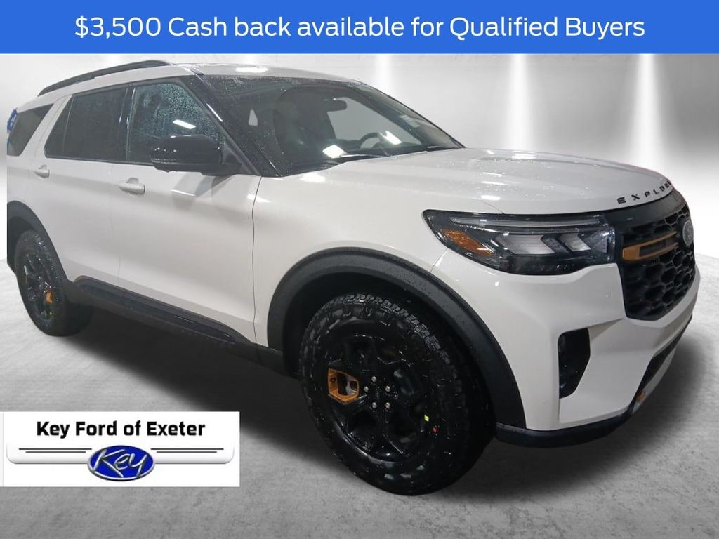KEY FORD OF EXETER is proud to present you with another True Market Priced Vehicle. This 2026 Ford Explorer Tremor is loaded with the following Factory Options: 4WD Equipment Group 800A Standard Package (Heated/Ventilated Miko Suede Captain's Chairs, Radio: B&O Sound System by Bang and Olufsen, and Wheels: 18" High Gloss Black-Painted Aluminum), 4WD, 10 Speakers, 3rd row seats: bench, 4-Wheel Disc Brakes, ABS brakes, Air Conditioning, Alloy wheels, AM/FM radio: SiriusXM with 360L, Apple CarPlay/Android Auto, Auto High-beam Headlights, Automatic temperature control, Brake assist, Bumpers: body-color, Compass, Delay-off headlights, Driver door bin, Driver vanity mirror, Dual front impact airbags, Dual front side impact airbags, Electronic Stability Control, Emergency communication system: 911 Assist, Exterior Parking Camera Rear, Four wheel independent suspension, Front anti-roll bar, Front Bucket Seats, Front Center Armrest, Front dual zone A/C, Front fog lights, Front reading lights, Fully automatic headlights, Garage door transmitter, Heated door mirrors, Heated front seats, Heated rear seats, Heated steering wheel, Illuminated entry, Knee airbag, Leather steering wheel, Low tire pressure warning, Navigation System, Occupant sensing airbag, Outside temperature display, Overhead airbag, Overhead console, Panic alarm, Passenger door bin, Passenger vanity mirror, Power door mirrors, Power driver seat, Power Liftgate, Power passenger seat, Power steering, Power windows, Rear air conditioning, Rear anti-roll bar, Rear reading lights, Rear window defroster, Rear window wiper, Remote keyless entry, SecuriCode Keyless Entry Keypad, Security system, Speed control, Speed-sensing steering, Speed-Sensitive Wipers, Split folding rear seat, Spoiler, Sport steering wheel, Steering wheel mounted audio controls, Tachometer, Telescoping steering wheel, Tilt steering wheel, Traction control, Trip computer, Variably intermittent wipers, and Ventilated front seats!! Price includes: $3500 - Retail Customer Cash. Exp. 03/31/2026