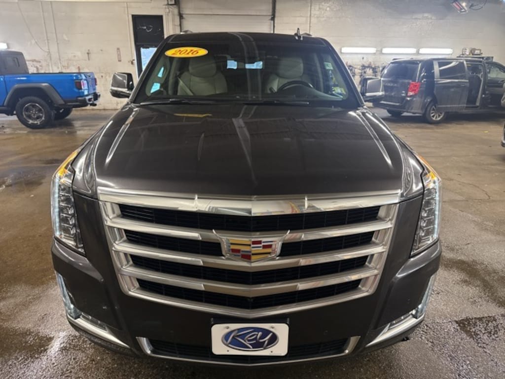 Key Chevrolet Burlington is proud to present you with another True Market Priced Pre-Owned Vehicle. Transparent Pricing Of $ 24999 !! This 2016 Cadillac Escalade Luxury is loaded with the following Factory Options: 4WD and Shale With Cocoa Accents Leather Driver Awareness Package (Forward Collision Alert, IntelliBeam Headlamps, and Lane Keep Assist), Preferred Equipment Group 1SB (Power Tilt-Sliding Sunroof w/Express-Open/Close, Rear Cross-Traffic Alert, Reconfigurable 4-Color Head-Up Display, Second Row Bucket Seats, and Side Blind Zone Alert), Theft-Deterrent Package (Theft-Deterrent Alarm System, Vehicle Inclination Sensor, and Vehicle Interior Movement Sensor), 4WD, Shale With Cocoa Accents Leather, 16 Speakers, 22" x 9" 7-Spoke Ultra-Bright Aluminum Wheels, 3.23 Axle Ratio, 3rd row seats: split-bench, 4-Wheel Disc Brakes, ABS brakes, Adaptive suspension, Adjustable pedals, Air Conditioning, Alloy wheels, AM/FM radio: SiriusXM, Apple CarPlay, Auto High-beam Headlights, Auto tilt-away steering wheel, Auto-dimming door mirrors, Auto-dimming Rear-View mirror, Auto-leveling suspension, Automatic temperature control, Black Front License Plate Bracket, Bodyside moldings, Bose Centerpoint Surround Sound System, Brake assist, Bumpers: body-color, CD player, Compass, Delay-off headlights, Driver door bin, Driver vanity mirror, Dual front impact airbags, Dual front side impact airbags, DVD-Audio, Electronic Stability Control, Emergency communication system: OnStar, Exterior Parking Camera Rear, Front anti-roll bar, Front Bucket Seats, Front Center Armrest w/Storage, Front dual zone A/C, Front reading lights, Front wheel independent suspension, Fully automatic headlights, Garage door transmitter, HD Radio, Heads-Up Display, Heated & Cooled Front Bucket Seats, Heated door mirrors, Heated front seats, Heated rear seats, Heated steering wheel, Illuminated entry, Lane Departure Warning System, Leather Seating Surfaces, Leather Shift Knob, Leather steering wheel, Low tire pressure warning, Magnetic Ride Control Suspension, Memory seat, Navigation System, NavTraffic, Occupant sensing airbag, Outside temperature display, Overhead airbag, Overhead console, Panic alarm, Passenger door bin, Passenger vanity mirror, Pedal memory, Power door mirrors, Power driver seat, Power Liftgate, Power moonroof, Power passenger seat, Power steering, Power windows, Radio data system, Radio: Cadillac CUE Info/Media Ctrl Sys w/Embd Nav, Rain sensing wipers, Rear air conditioning, Rear anti-roll bar, Rear audio controls, Rear reading lights, Rear Seat Entertainment System, Rear window defroster, Rear window wiper, Remote keyless entry, Roof rack: rails only, Security system, Single Slot CD/MP3 Player, SiriusXM Satellite Radio, Speed control, Split folding rear seat, Spoiler, Steering wheel memory, Steering wheel mounted audio controls, Tachometer, Telescoping steering wheel, Tilt steering wheel, Traction control, Trip computer, Turn signal indicator mirrors, Variably intermittent wipers, Ventilated front seats, and Wheels: 22" x 9" 7-Spoke Aluminum!!