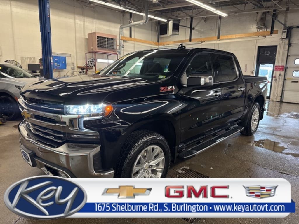 Key Chevrolet Burlington is proud to present you with another True Market Priced Pre-Owned Vehicle. Transparent Pricing Of $ 32649 !! This 2019 Chevrolet Silverado 1500 LTZ is loaded with the following Factory Options: 8-Speed Automatic, 4WD, and Jet Black Leather LTZ Convenience Package (2 USB Ports (First Row), 2nd Row Heated Outboard Seats, Floor Mounted Console, Front Bucket Seats, Power Sliding Rear Window w/Rear Defogger, Power Tailgate, Universal Home Remote, and Ventilated Driver & Front Passenger Seats), LTZ Convenience Package II (Premium Bose 7-Speaker Sound System, Radio: Chevrolet Infotainment 3 Premium System, and Wireless Charging), LTZ Plus Package, Preferred Equipment Group 1LZ (10-Way Power Driver Seat w/Lumbar, 10-Way Power Passenger Seat Adjuster w/Lumbar, 12-Volt Rear Auxiliary Power Outlet, 120-Volt Bed Mounted Power Outlet, 120-Volt Instrument Panel Power Outlet, 170 Amp Alternator, 4.2" Diagonal Color Display Driver Info Center, 6-Speaker Audio System, Advanced Trailering System, Auto-Dimming Inside Rear-View Mirror, Auxiliary External Transmission Oil Cooler, Bluetooth® For Phone, Chevrolet Connected Access, Chevrolet w/4G LTE, Chrome Grille, Chrome Mirror Caps, Color-Keyed Carpeting Floor Covering, Compass, Deep-Tinted Glass, Driver Memory, Electric Rear-Window Defogger, Electrical Lock Control Steering Column, Electronic Cruise Control, EZ Lift Power Lock & Release Tailgate, Front Frame-Mounted Black Recovery Hooks, Front LED Fog Lamps, Front Rubberized Vinyl Floor Mats, HD Radio, HD Rear Vision Camera, Heated Driver & Front Passenger Seats, Heated Steering Wheel, Heavy-Duty Rear Locking Differential, Hitch Guidance, Hitch Guidance w/Hitch View, Integrated Trailer Brake Controller, Keyless Open & Start, Leather Wrapped Steering Wheel, LED Cargo Area Lighting, Manual Tilt/Telescoping Steering Column, OnStar & Chevrolet Connected Services Capable, Outside Heated Power-Adjustable Mirrors, Power Door Locks, Power Front Passenger Windows w/Express Up/Down, Power Front Windows w/Driver Express Up/Down, Power Rear Windows w/Express Down, Rear Dual USB Charging-Only Ports, Rear Rubberized-Vinyl Floor Mats, Rear Wheelhouse Liners, Remote Vehicle Starter System, SiriusXM Radio, Steering Wheel Audio Controls, Theft Deterrent System (Unauthorized Entry), and Trailer Tire Pressure Monitor System), Safety Package (Lane Change Alert w/Side Blind Zone Alert, Perimeter Lighting, Rear Cross Traffic Alert, and Ultrasonic Front & Rear Park Assist), Safety Package II (Following Distance Indicator, Forward Collision Alert, Front Pedestrian Braking, IntelliBeam Automatic High Beam On/Off, Lane Keep Assist w/Lane Departure Warning, Low Speed Forward Automatic Braking, and Safety Alert Seat), Technology Package (15" Diagonal Head-Up Display, 8" Driver Information Center, HD Surround Vision, and Rear Camera Mirror), Trailering Package, Up-Level Rear Seat w/Storage Package, Z71 Off-Road Package (Hill Descent Control and Off-Road Suspension), 8-Speed Automatic, 4WD, Jet Black Leather, 3.23 Rear Axle Ratio, 4-Wheel Disc Brakes, 40/20/40 Front Split-Bench Seat, 6 Speakers, 6" Rectangular Chromed Assist Steps (LPO), ABS brakes, Air Conditioning, All-Weather Floor Liner (LPO) (AAK), Alloy wheels, AM/FM radio: SiriusXM, Apple CarPlay/Android Auto, Auto-dimming door mirrors, Auto-dimming Rear-View mirror, Automatic temperature control, Brake assist, Bumpers: chrome, Chev