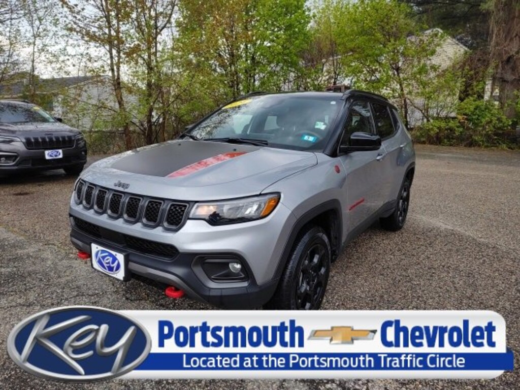 Portsmouth Chevrolet is proud to present you with another True Market Priced Pre-Owned Vehicle. Transparent Pricing Of $ 19999 !! This 2024 Jeep Compass Trailhawk is loaded with the following Factory Options: 4WD Quick Order Package 29E, 4WD, 10.1 Touchscreen Display, 4-Wheel Disc Brakes, 4.398 Final Drive Ratio, 4G LTE Wi-Fi Hot Spot, 6 Speakers, ABS brakes, Air Conditioning, Alloy wheels, AM/FM radio: SiriusXM, Auto High-beam Headlights, Auto-dimming Rear-View mirror, Automatic temperature control, Brake assist, Bumpers: body-color, Compass, Delay-off headlights, Driver door bin, Driver vanity mirror, Dual front impact airbags, Dual front side impact airbags, Electronic Stability Control, Emergency communication system: Jeep Connect, For Details, Visit DriveUconnect.com, For More Info, Call 800-643-2112, Four wheel independent suspension, Front anti-roll bar, Front Bucket Seats, Front Center Armrest w/Storage, Front dual zone A/C, Front fog lights, Front License Plate Bracket, Front reading lights, Fully automatic headlights, Global Telematics Box Module (TBM), Heated door mirrors, Illuminated entry, Knee airbag, Leather Shift Knob, Leather steering wheel, Low tire pressure warning, Occupant sensing airbag, Outside temperature display, Overhead airbag, Overhead console, Panic alarm, ParkView Rear Back-Up Camera, Passenger door bin, Passenger vanity mirror, Power door mirrors, Power steering, Power windows, Premium Cloth/Leather Trim Bucket Seats, Radio: Uconnect 5 w/10.1 Display, Rain sensing wipers, Rear anti-roll bar, Rear seat center armrest, Rear window defroster, Rear window wiper, Remote keyless entry, Security system, SiriusXM Guardian - Included Trial (B), SiriusXM Radio Service, Speed control, Split folding rear seat, Spoiler, Steering wheel mounted audio controls, Tachometer, Telescoping steering wheel, Tilt steering wheel, Traction control, Trip computer, Turn signal indicator mirrors, Variably intermittent wipers, and Wheels: 17 x 6.5 Painted Black Aluminum!!