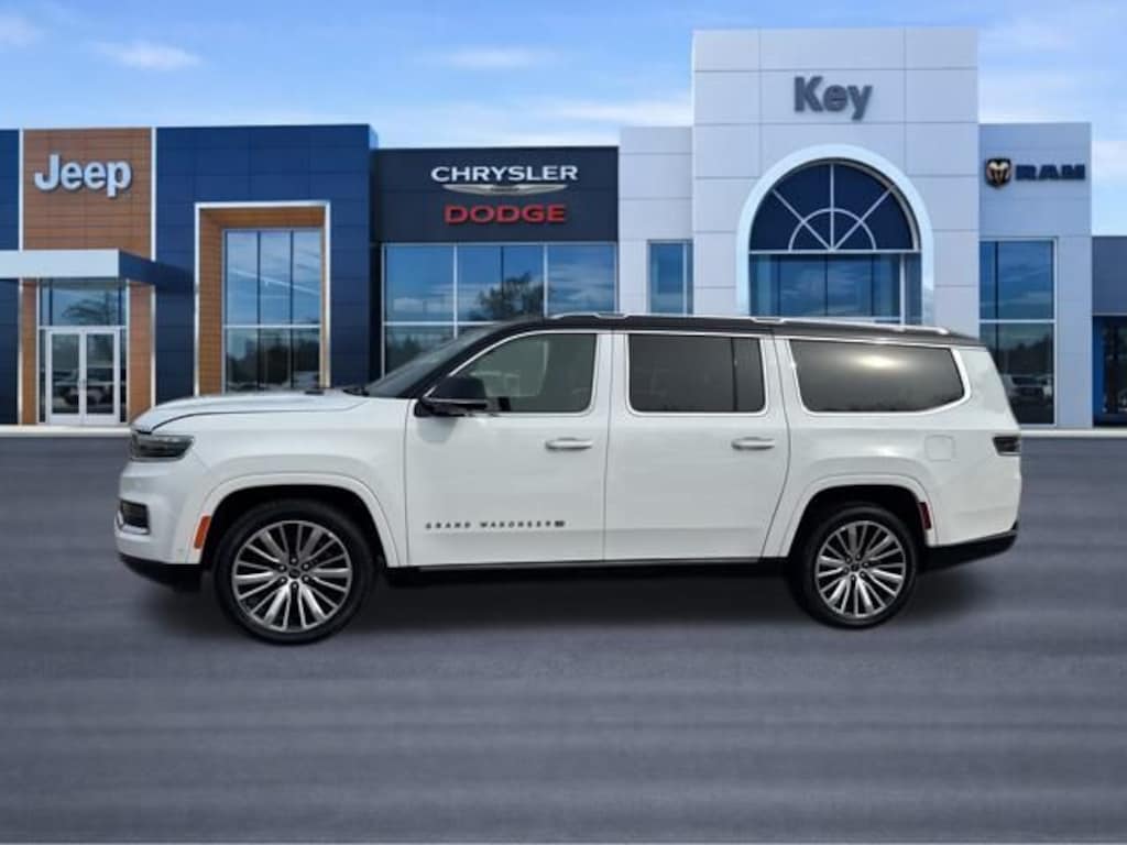 Key Chrysler Dodge Jeep Ram of Rochester is proud to present you with another True Market Priced Pre-Owned Vehicle. Transparent Pricing Of $ 59999 !! This 2024 Jeep Grand Wagoneer L Series III is loaded with the following Factory Options: Quick Order Package 28W, Two Tone Paint Group, 3.92 Rear Axle Ratio, 3rd row seats: bench, 4-Wheel Disc Brakes, ABS brakes, Adjustable pedals, Air Conditioning, Alloy wheels, AM/FM radio: SiriusXM with 360L, Anti-whiplash front head restraints, Apple CarPlay/Android Auto, Audio memory, Auto High-beam Headlights, Auto-dimming door mirrors, Auto-dimming Rear-View mirror, Auto-leveling suspension, Automatic temperature control, Brake assist, Bumpers: body-color, Compass, Delay-off headlights, Driver door bin, Driver vanity mirror, Driver's Seat Mounted Armrest, Dual front impact airbags, Dual front side impact airbags, Electronic Stability Control, Emergency communication system, Four wheel independent suspension, Front anti-roll bar, Front Bucket Seats, Front Center Armrest w/Storage, Front dual zone A/C, Front fog lights, Front reading lights, Fully automatic headlights, Garage door transmitter, Genuine wood console insert, Genuine wood dashboard insert, Genuine wood door panel insert, Heads-Up Display, Heated door mirrors, Heated front seats, Heated rear seats, Heated steering wheel, Illuminated entry, Knee airbag, Leather steering wheel, Low tire pressure warning, Memory seat, Navigation System, Night vision lights, Normal Duty Suspension, Occupant sensing airbag, Outside temperature display, Overhead airbag, Overhead console, Panic alarm, Passenger door bin, Passenger seat mounted armrest, Passenger vanity mirror, Pedal memory, Power adjustable front head restraints, Power door mirrors, Power driver seat, Power Liftgate, Power moonroof, Power passenger seat, Power steering, Power windows, Premium Leather Trimmed Bucket Seats, Radio data system, Radio: Uconnect 5 Nav w/12.0" Display, Rain sensing wipers, Rear air conditioning, Rear anti-roll bar, Rear dual zone A/C, Rear reading lights, Rear seat center armrest, Rear window defroster, Rear window wiper, Reclining 3rd row seat, Remote keyless entry, Roof rack, Security system, Speed control, Speed-sensing steering, Speed-Sensitive Wipers, Split folding rear seat, Steering wheel memory, Steering wheel mounted audio controls, Tachometer, Telescoping steering wheel, Tilt steering wheel, Traction control, Trip computer, Turn signal indicator mirrors, Variably intermittent wipers, Ventilated front seats, Ventilated rear seats, Voltmeter, and Wheels: 22" x 9.0" Premium 4 Aluminum!!