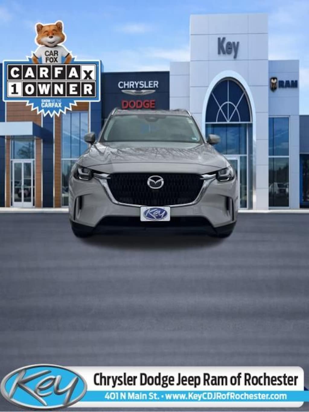 Key Chrysler Dodge Jeep Ram of Rochester is proud to present you with another True Market Priced Pre-Owned Vehicle. Transparent Pricing Of $ 28109 !! This 2024 Mazda CX-90 3.3 Turbo Preferred is loaded with the following Factory Options: 2nd-Row Captain's Chairs, 3.692 Axle Ratio, 3rd row seats: bench, 4-Wheel Disc Brakes, 8 Speakers, ABS brakes, Air Conditioning, Alloy wheels, AM/FM radio, AppLink/Apple CarPlay and Android Auto, Auto High-beam Headlights, Automatic temperature control, Brake assist, Bumpers: body-color, Compass, Delay-off headlights, Driver door bin, Driver vanity mirror, Dual front impact airbags, Dual front side impact airbags, E911 Automatic Emergency Notification, Electronic Stability Control, Emergency communication system: MAZDA CONNECT, Exterior Parking Camera Rear, Four wheel independent suspension, Front anti-roll bar, Front Bucket Seats, Front Center Armrest w/Storage, Front dual zone A/C, Front reading lights, Fully automatic headlights, Heated door mirrors, Heated Front Bucket Seats, Heated front seats, Illuminated entry, Infotainment System Voice Command, Knee airbag, Leather Seat Trim, Leather Shift Knob, Leather steering wheel, Low tire pressure warning, Mazda Connected Services, Occupant sensing airbag, Outside temperature display, Overhead airbag, Overhead console, Pandora Internet Radio Integration, Panic alarm, Passenger door bin, Passenger vanity mirror, Power door mirrors, Power driver seat, Power Liftgate, Power moonroof, Power passenger seat, Power steering, Power windows, Radio Broadcast Data System Program Information, Radio data system, Radio: AM/FM Sound System, Rain sensing wipers, Rear air conditioning, Rear anti-roll bar, Rear reading lights, Rear seat center armrest, Rear window defroster, Rear window wiper, Remote keyless entry, Roadside Assistance Kit, SMS Text Msg Audio Delivery & Reply, Speed control, Speed-sensing steering, Split folding rear seat, Spoiler, Steering wheel mounted audio controls, Tachometer, Telescoping steering wheel, Tilt steering wheel, Traction control, Trip computer, Turn signal indicator mirrors, Variably intermittent wipers, and Wheels: 19" x 8.5J Aluminum Alloy!!