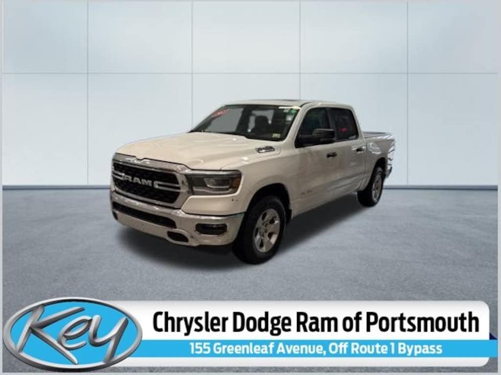 Key Chrysler Dodge Ram of Portsmouth is proud to present you with another True Market Priced Pre-Owned Vehicle. Transparent Pricing Of $ !! This 2023 Ram 1500 Big Horn/Lone Star is loaded with the following Factory Options: Big Horn Level 2 Equipment Group (DISC) (115V Auxiliary Power Outlet, 2nd Row In Floor Storage Bins, 400W Inverter, 4G LTE Wi-Fi Hot Spot, 8.4" Touchscreen Display, 9 Amplified Speakers w/Subwoofer, Air Conditioning ATC w/Dual Zone Control, Apple CarPlay, Auto-Dimming Exterior Driver Mirror, Auto-Dimming Rear-View Mirror, Black Exterior Mirrors, Black Premium Power Mirrors, Bluetooth Handsfree Phone & Audio, Class IV Receiver Hitch, Cluster 7.0" TFT Color Display, Connectivity - US/Canada, Convex Wide-Angle Exterior Mirror Insert, Electric Shift-On-Demand Transfer Case, Exterior Mirrors Courtesy Lamps, Exterior Mirrors w/Heating Element, Exterior Mirrors w/Supplemental Signals, For Details, Visit DriveUconnect.com, For More Info, Call 800-643-2112, Front Fog Lamps, Glove Box Lamp, Google Android Auto, GPS Antenna Input, Heated Front Seats, Heated Steering Wheel, Integrated Center Stack Radio, LED Footwell Lighting, Media Hub w/2 Charge Only USBs, ParkSense Front/Rear Park Assist w/Stop, Power 2-Way Driver Lumbar Adjust, Power 8-Way Driver Seat, Power Adjustable Pedals, Power-Folding Mirrors, Radio: Uconnect 5 W w/8.4" Display, Rear Dome w/On/Off Switch Lamp, Rear Power Sliding Window, Rear Window Defroster, Remote Start System, Security Alarm, SiriusXM Satellite Radio, Sun Visors w/Illuminated Vanity Mirrors, Universal Garage Door Opener, and USB Host Flip), Premium Lighting Group (Front LED Fog Lamps, LED Reflector Headlamps, and LED Taillamps), Quick Order Package 23Z Big Horn (Big Horn Badge), 3 Rear Seat Head Restraints, 3.21 Rear Axle Ratio, 4 Way Front Headrests, 4-Wheel Disc Brakes, 48V Belt Starter Generator, 6 Speakers, ABS brakes, Air Conditioning, All R1 High Radios, All Radio Equipped Vehicles, Alloy wheels, AM/FM radio, Brake assist, Bumpers: chrome, Cloth Bench Seat, Compass, Connected Travel & Traffic Services, Delay-off headlights, Disassociated Touchscreen Display, Dome Dual LED Reading Lamp, Driver door bin, Dual front impact airbags, Dual front side impact airbags, Dual-Pane Panoramic Sunroof, Electronic Stability Control, Emergency communication system: SiriusXM Guardian, Front anti-roll bar, Front Center Armrest w/Storage, Front License Plate Bracket, Front reading lights, Front Seat Back Map Pockets, Front wheel independent suspension, Fully automatic headlights, Global Telematics Box Module (TBM), GPS Navigation, HD Radio, Heated door mirrors, Illuminated entry, Integrated Voice Command w/Bluetooth, Leather steering wheel, Low tire pressure warning, Manufacturer's Statement of Origin, Occupant sensing airbag, Outside temperature display, Overhead airbag, Overhead console, Overhead LED Lamps, Pani