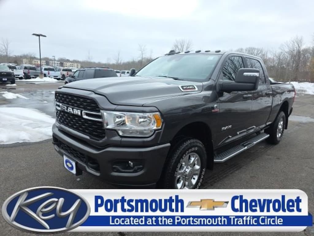 Portsmouth Chevrolet is proud to present you with another True Market Priced Pre-Owned Vehicle. Transparent Pricing Of $ 56995 !! This 2024 Ram 3500 Big Horn is loaded with the following Factory Options: Cold Weather Group (Engine Block Heater and MOPAR Winter Front Grille Cover), Heated Seats & Wheel Group (Heated Front Seats, Heated Steering Wheel, Leather Wrapped Steering Wheel, and Steering Wheel Mounted Audio Controls), Level 1 Equipment Group (2 Way Rear Headrest Seat, 2nd Row In Floor Storage Bins, 4 Way Front Headrests, 40/20/40 Split Bench Seat, 4G LTE Wi-Fi Hot Spot, 8.4 Touchscreen Display, All R1 Low Radios, All Radio Equipped Vehicles, Apple CarPlay, Auto Power-Folding Mirrors, Black Exterior Mirrors, Bluetooth Handsfree Phone & Audio, Center Hub, Connectivity - US/Canada, Dual Glove Boxes, Exterior Mirrors Courtesy Lamps, Exterior Mirrors w/Heating Element, Exterior Mirrors w/Supplemental Signals, Foam Bottle Insert (Door Trim Panel), Footwell Courtesy Lamp, For Details Visit DriveUconnect.com, For More Info, Call 800-643-2112, Forward & Reverse Utility Lights, Front Armrest w/Cupholders, Front Center Seat Cushion Storage, Front Fog Lamps, Front Seat Back Map Pockets, Global Telematics Box Module (TBM), Glove Box Lamp, Google Android Auto, GPS Antenna Input, Integrated Center Stack Radio, Integrated Voice Command w/Bluetooth, Locking Lower Glove Box, Manual Adjust 4-Way Front Passenger Seat, Mirror Running Lights, Power Adjust 8-Way Driver Seat, Power Adjust Mirrors, Power Heated Fold Telescopic Mirrors, Power Telescoping Mirrors, Power-Adjustable Convex Aux Mirrors, Premium Cloth 40/20/40 Bench Seat, Rear 60/40 Folding Seat, Rear Dome w/On/Off Switch Lamp, Remote USB Port - Charge Only, Selectable Tire Fill Alert, SiriusXM Radio Service, SiriusXM Satellite Radio, Storage Tray, and Wheels: 18 x 8.0 Polished Aluminum), Protection Group, Quick Order Package 21Z Big Horn, Safety Group (Adaptive Cruise Control w/Stop, Adaptive Steering System, Auto High Beam Headlamp Control, Auto-Dimming Rear-View Mirror, Full Speed Forward Collision Warning Plus, Lane Keep Assist, and Rain Sensitive Windshield Wipers), Snow Chief Group (Auxiliary Switches Prep, Clearance Lamps, Dash Pass Thru Wire Circuits, and I/P Mounted Auxiliary Switches), Sport Appearance Package (Black Interior Accents, Body Color Door Handles, Body Color Grille Surround, Painted Front Bumper, Painted Rear Bumper, and Sport Decal), Towing Technology Group (CTR Stop Lamp w/Cargo View Camera, Surround View Camera System, and Trailer Reverse Guidance), 115V Auxiliary Front Power Outlet, 220 Amp Alternator, 3.73 Axle Ratio, 4-Wheel Disc Brakes, 400W Inverter, 6 Speakers, 9 Alpine Speakers w/Subwoofer, ABS brakes, Active Noise Control System, Air Conditioning, Air Conditioning ATC w/Dual Zone Control, Alexa Built-In, All R1 High Radios, Blind Spot & Cross Path Detection, Brake assist, Bumpers: chrome, Chrome Flat Cab-Length Side Steps, Cloth 40/20/40 Bench Seat, Compass, Connected Travel & Traffic Services, Delay-off headlights, Disassociated Touchscreen Display, Driver door bin, Dual Alternators Rated At 440 Amps, Dual front impact airbags, Dual front side impact airbags, Electronic Stability Control, Electronica